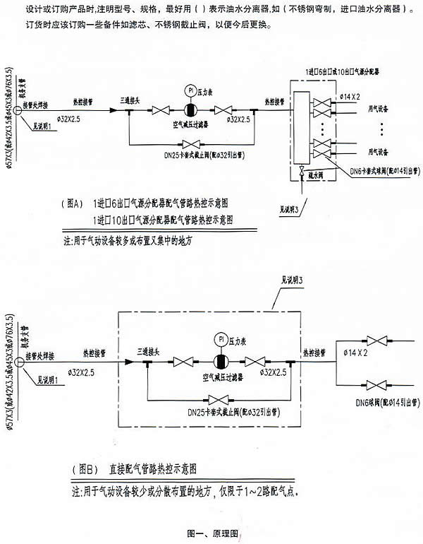 裝配氣源分派器可按照現場前提,程度安排在地坪或墻角處,也可掛墻裝配。