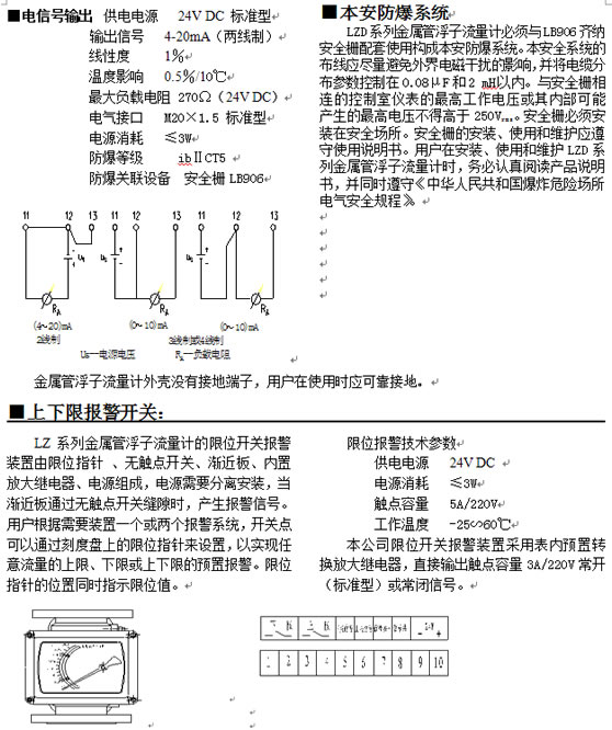 WE、WA系列配用LZ流量計參數